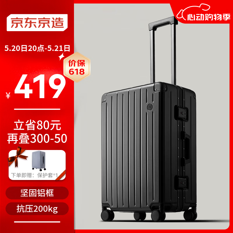 京东京造无界铝框24英寸行李箱男女 旅行箱密码箱大容量皮箱学生 暮云黑价格:549.00元!