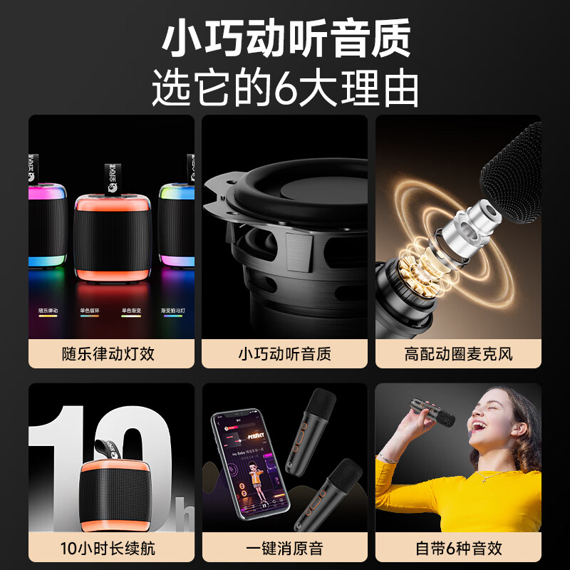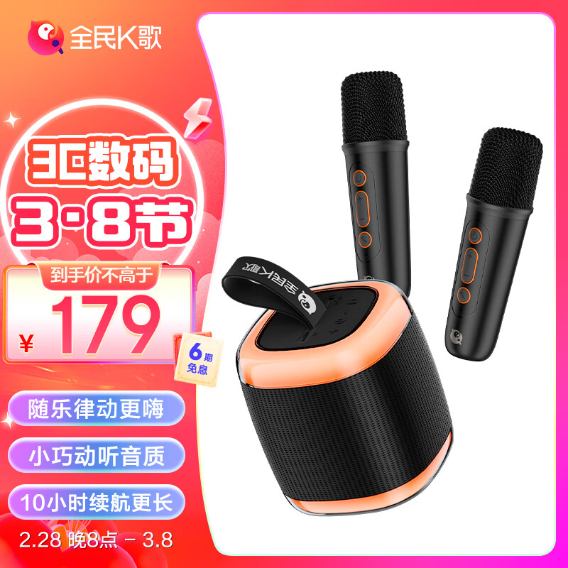 K歌MZ38 无线手提便携式户外广场舞音响套装桌面家用低音炮麦克风话筒K歌家庭KTV黑色音箱+双麦价格:179.00元!
