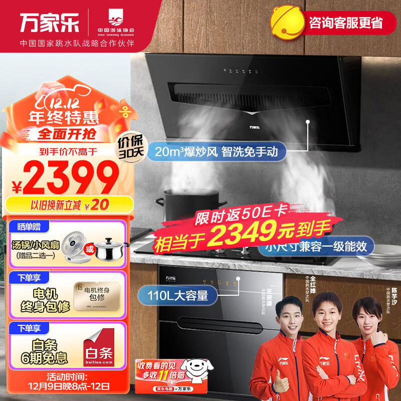 万家乐 抽油烟机 烟灶消三件套装 20m3/min挥手油烟机燃气灶消毒柜厨房三件套DAJ3+KA032B+DQ052天然气价格:2499.00元!