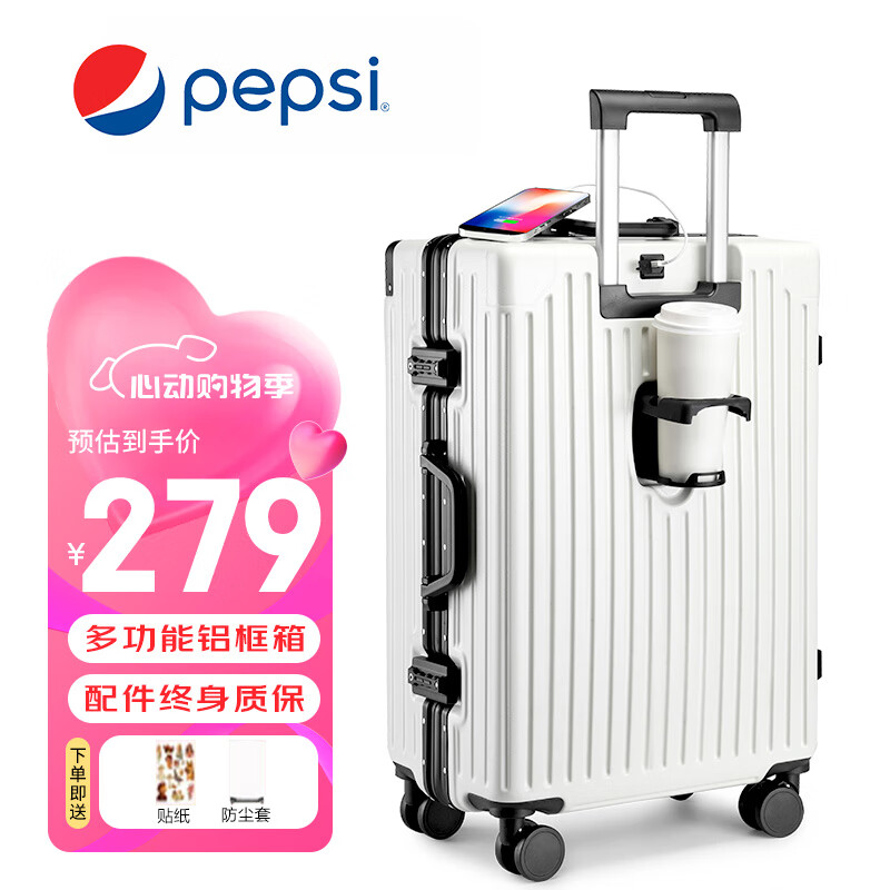 百事(PEPSI)行李箱男铝框拉杆箱女24英寸旅行箱大容量万向轮学生商务密码皮箱价格:279.00元!
