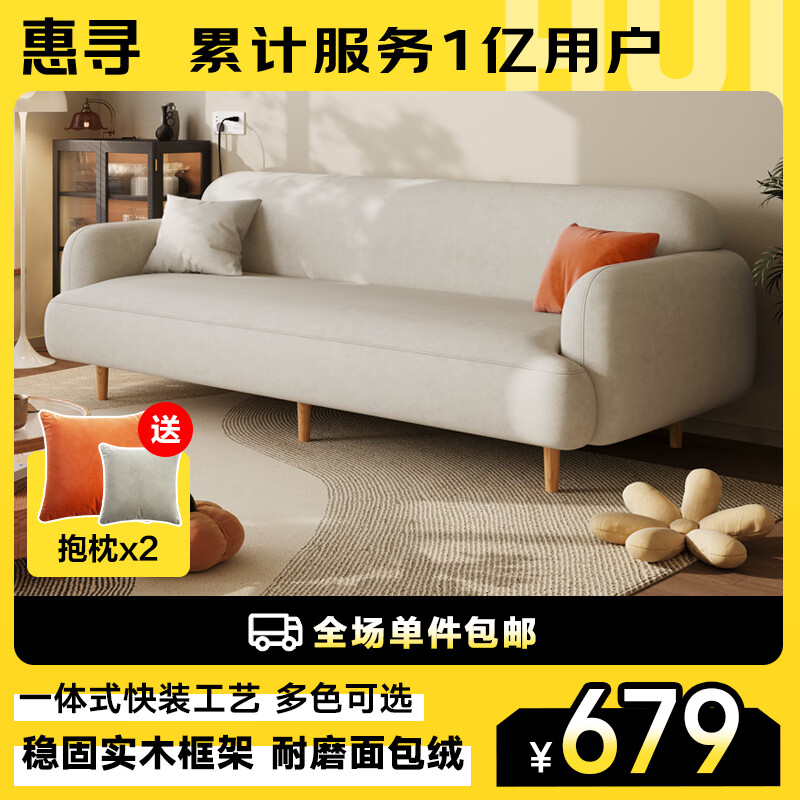 惠寻 京东自有品牌 绒面布艺沙发小户型客厅直排 小三人位1.8米价格:679.00元!