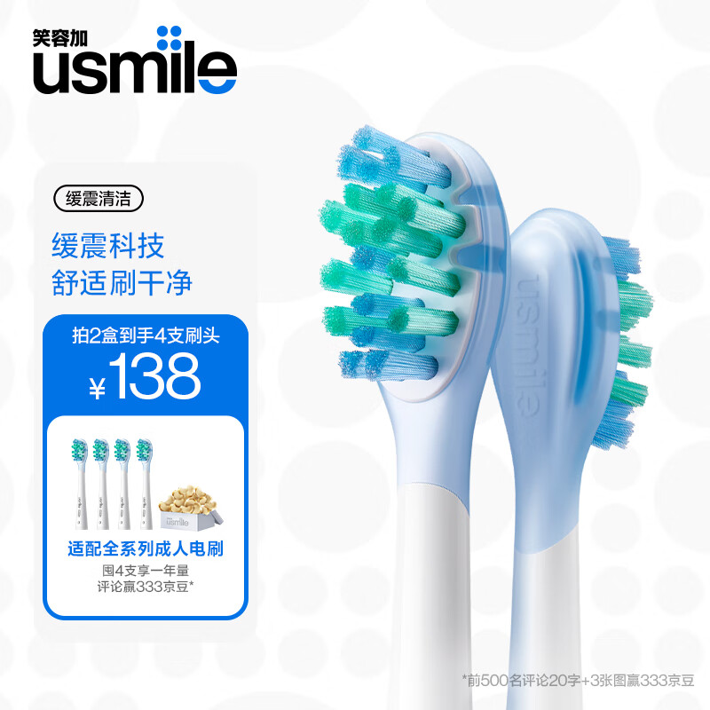 usmile笑容加 电动牙刷头 成人日常清洁 缓震清洁款-2支装 适配usmile成人牙刷价格:79.00元!