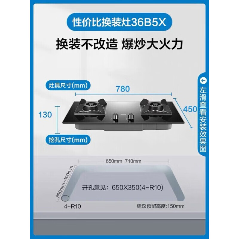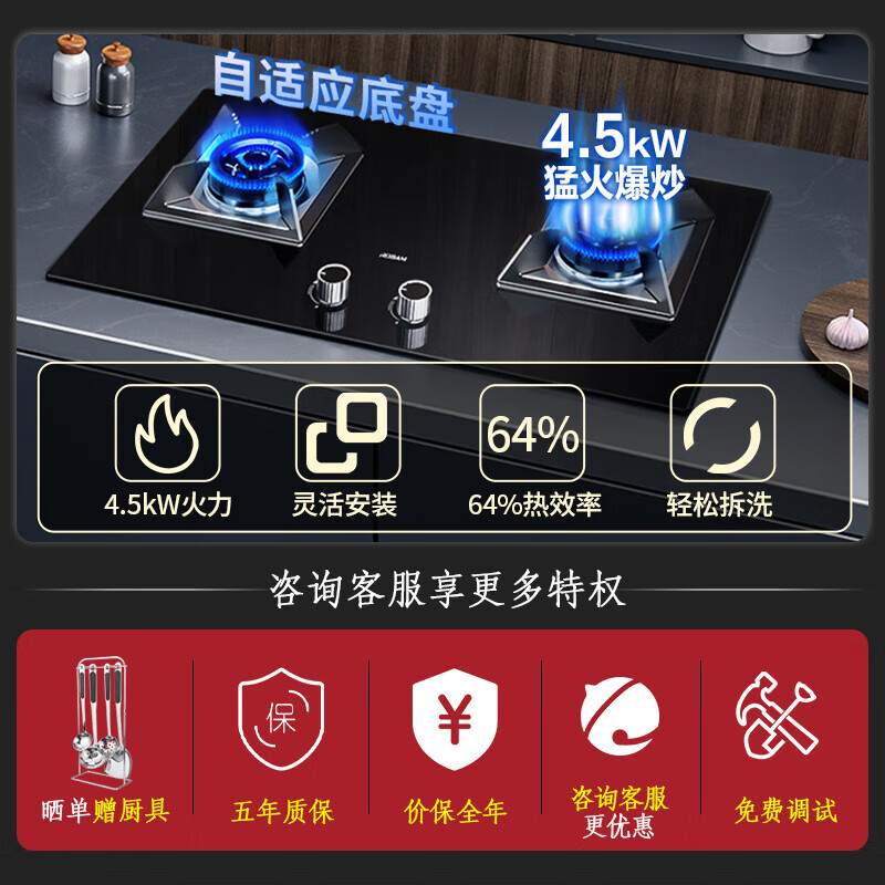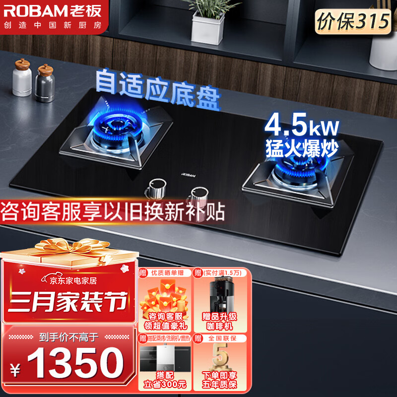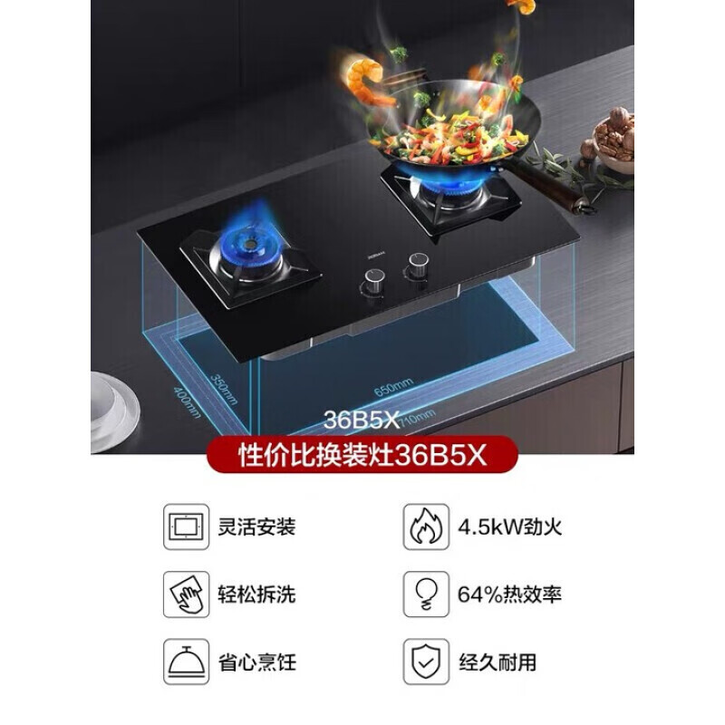 老板(Robam)燃气灶4.5kW自适应灶聚焰猛火换装大火力家用燃气灶嵌入式底盘可调节燃气灶36B5X(36B6D同型号)价格:1350.00元!