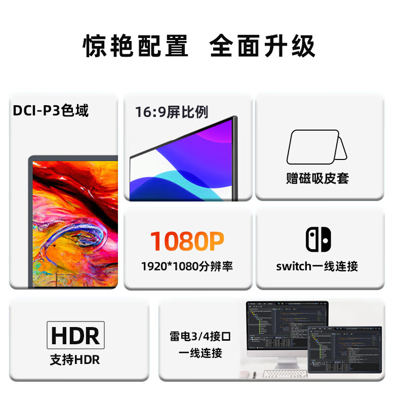 Eimio便携式显示器14英寸 HDR便携屏 电脑笔记本副屏双Type-C手机switch/PS4/5外接显示屏拓展屏 M14A价格:449.00元!
