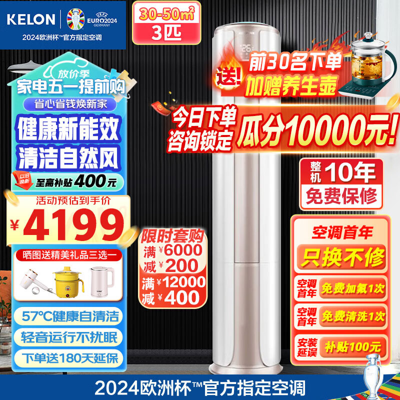 科龙(KELON)空调3匹变频冷暖新国标能效 客厅圆柱立式空调柜机智能WIFI智能双清洁KFR-72LW/FM1-A3价格:4189.00元!