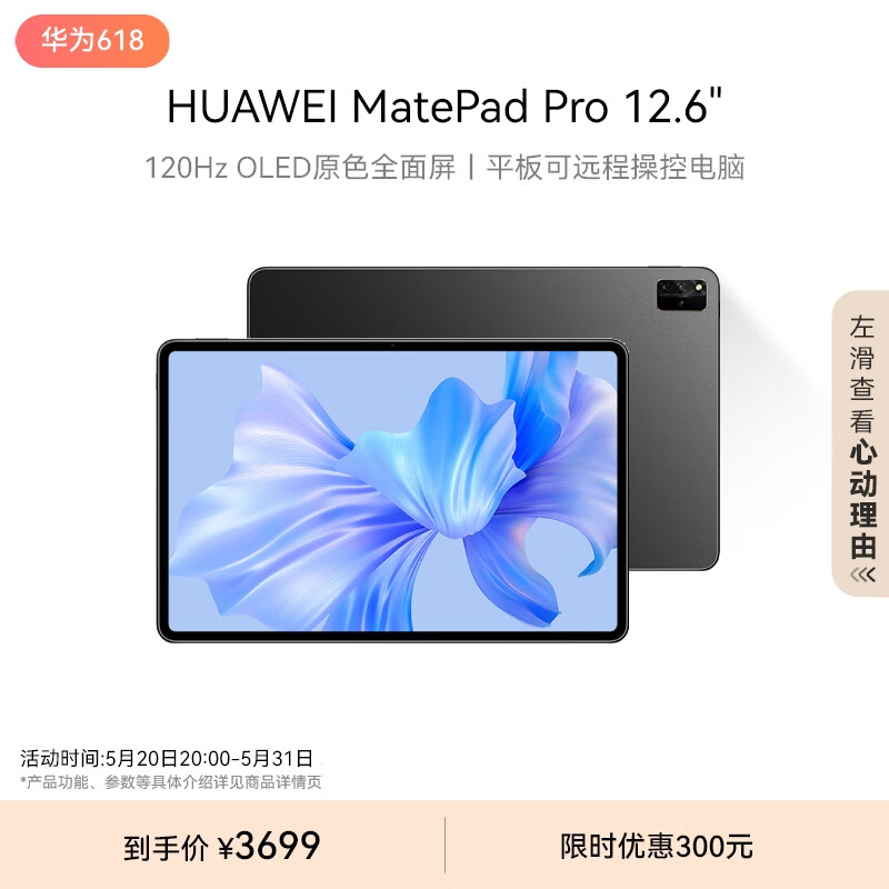 HUAWEI MatePad Pro 12.6英寸华为平板电脑HarmonyOS 2.5K高清120Hz屏办公学习 8+256GB WIFI 曜金黑价格:3699.00元!
