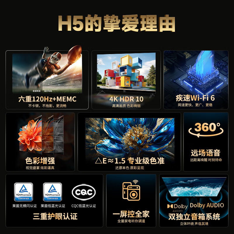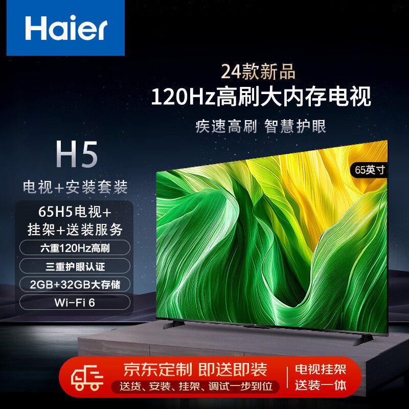 海尔(Haier)65H5 65英寸电视4K超高清120Hz屏2+32GB大内存护眼智能液晶平板电视机+安装服务【送装一体】价格:2438.00元!