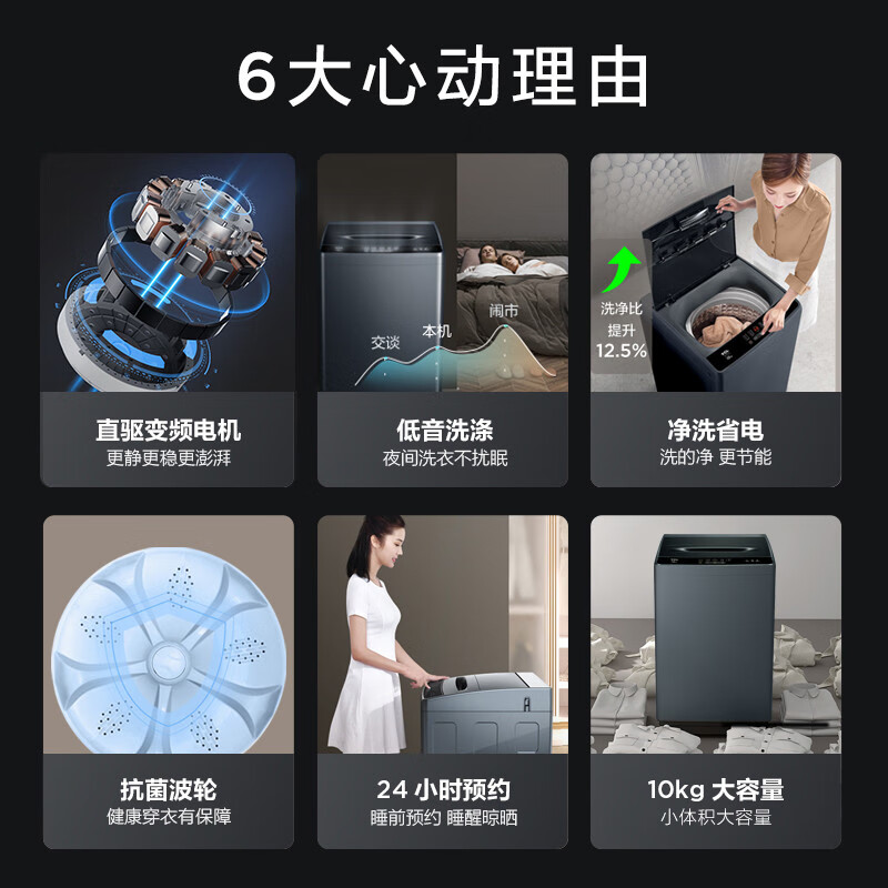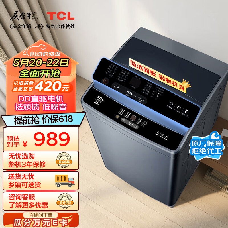 TCL 10KG直驱抗菌洗衣机T100 大容量 洗衣机全自动家用 以旧换新 宿舍租房神器 B100T100-D价格:989.00元!