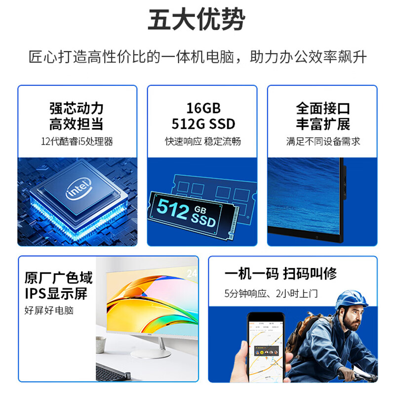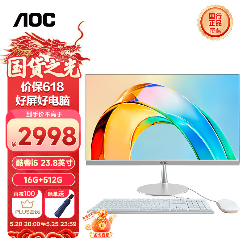 AOC美人鱼734Pro 23.8英寸高清办公网课学习台式一体机电脑(12代i5-12450H 16G 512G 双频WiFi )白价格:2998.00元!