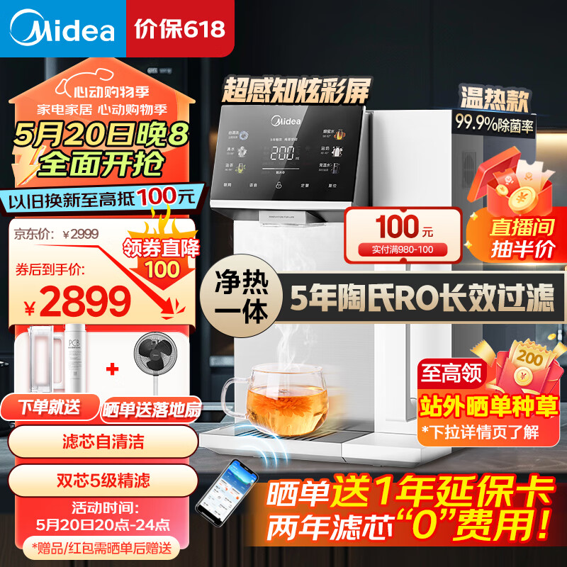 美的(Midea)魔方台式净水器加热直饮一体机净饮机即热饮水机家用即热式净饮一体机RO反渗透免安装 JR2288T-RO价格:2999.00元!