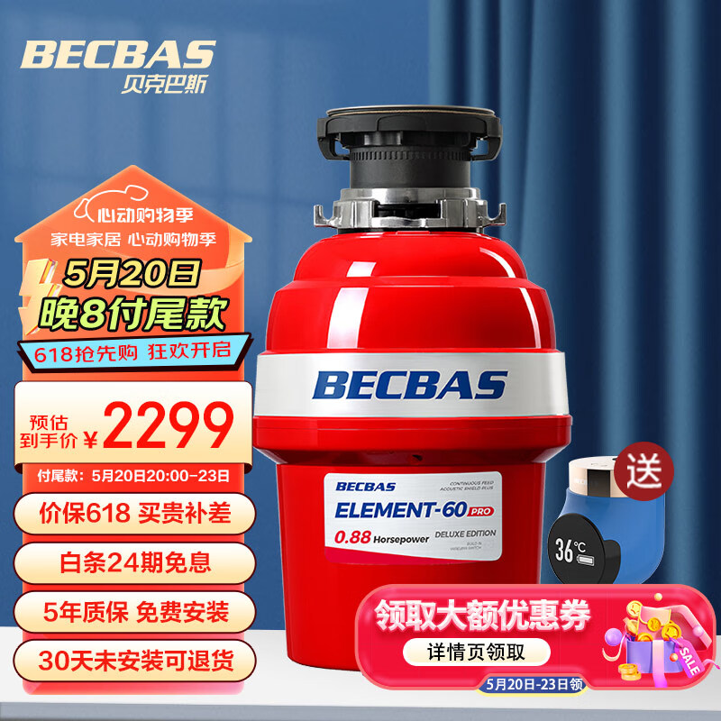 贝克巴斯 BECbase60PRO 厨余垃圾处理器全自动进水调速关机 鸿蒙家居智联价格:2399.00元!