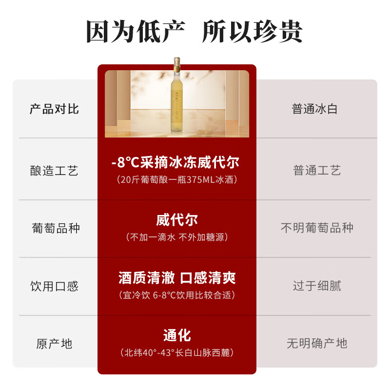 通化 1937莞妍冰酒 威代尔冰白葡萄酒11.5%vol 晚安红酒 375ml*6瓶 果酒价格:576.00元!