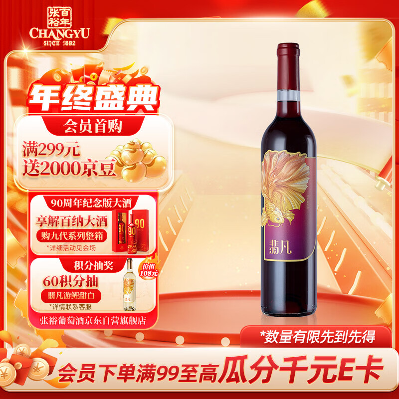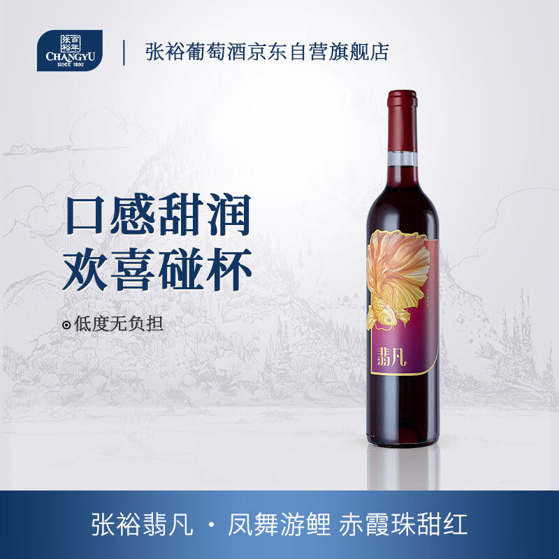 张裕 翡凡凤舞游鲤赤霞珠甜红葡萄酒750ml单瓶装国产红酒送礼价格:58.00元!
