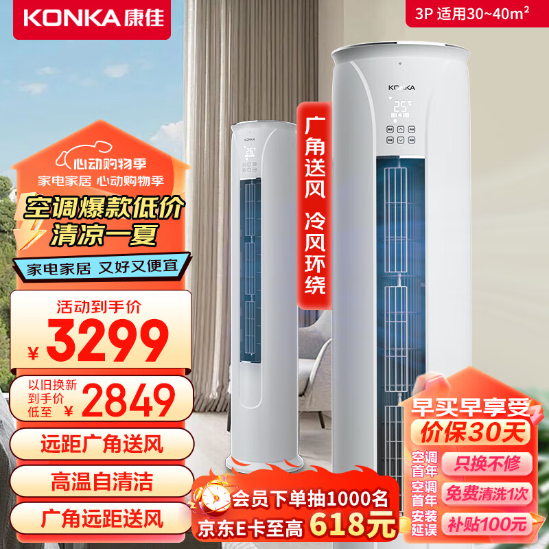 康佳(KONKA)3匹 新能效 第四代自清洁 一键节能 变频客厅空调 以旧换新 立式圆柱柜机 KFR-72LW/YC3价格:3299.00元!