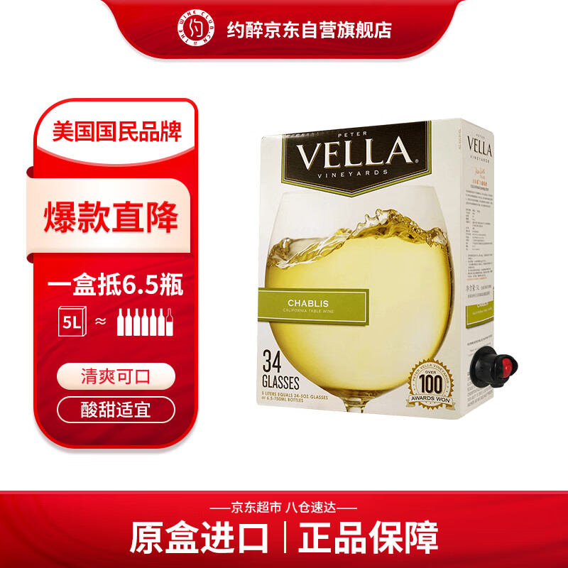 百乐莱vella半甜型夏布利晚安白葡萄酒 5L盒装 美国进口价格:198.00元!