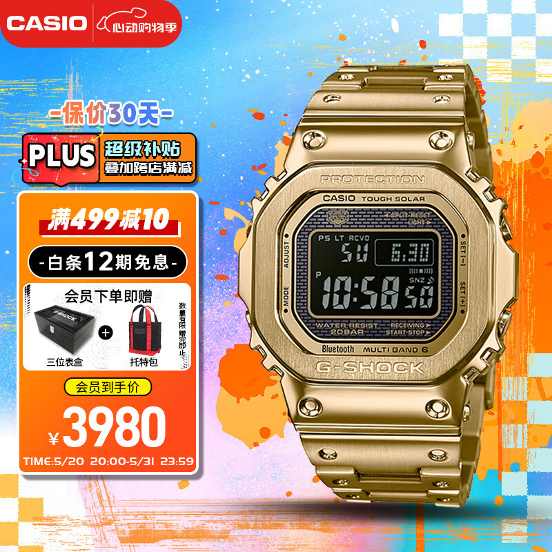 卡西欧(CASIO)手表男士经典小方块G-SHOCK运动电子表520礼物GMW-B5000GD-9PRT价格:3990.00元!
