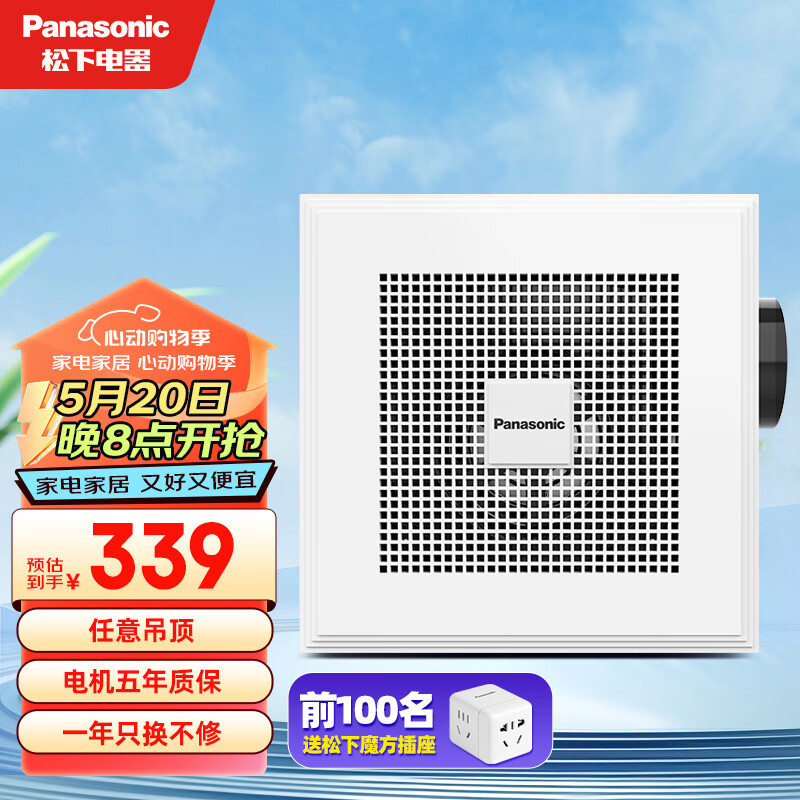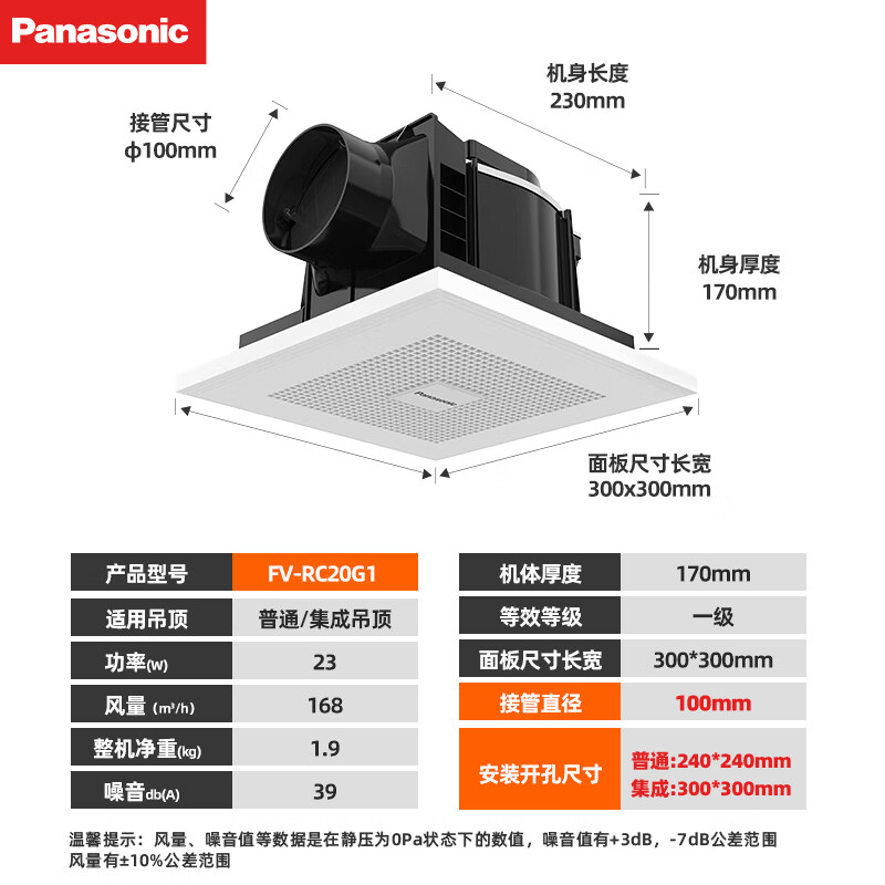 松下(Panasonic)排气扇吸顶式厨房抽风机吊顶卫生间强力排风扇通风管道换气扇 FV-RC20G1排风量168【通用吊顶】价格:399.00元!