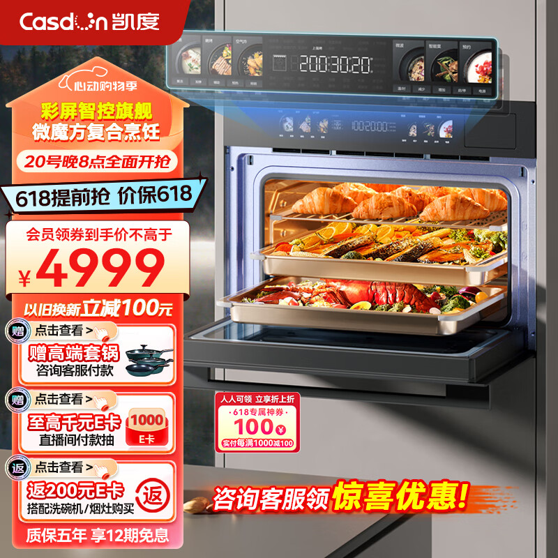 凯度(CASDON)52L嵌入式微蒸烤 双热风 微蒸烤炸炖5合1 WIFI智控 变频微波 蒸烤箱一体机 SR52BW1-GRPro价格:5499.00元!