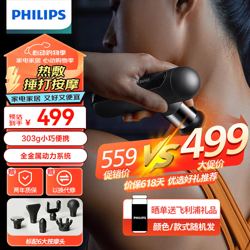 飞利浦(PHILIPS)筋膜枪 恒温热敷肌肉放松按摩器 颈椎肩部腿部捶打按摩仪器运动迷你按摩枪送礼推荐 小钢炮 3103G价格:699.00元!