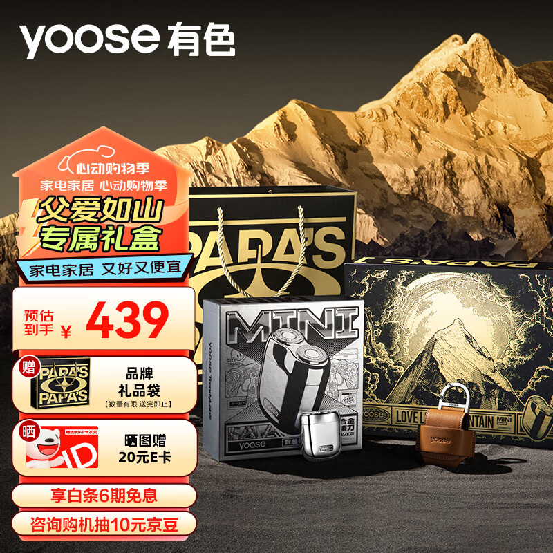 有色(yoose)男士电动剃须刀 迷你便携式刮胡刀 合金机身 送父亲节日礼物 MINI 电镀银 父爱如山礼盒价格:519.00元!