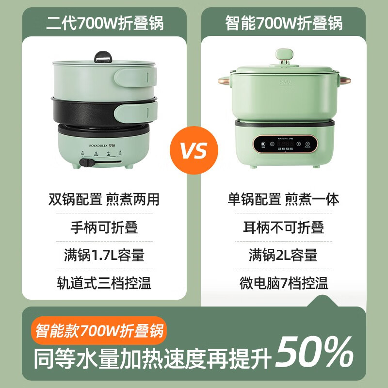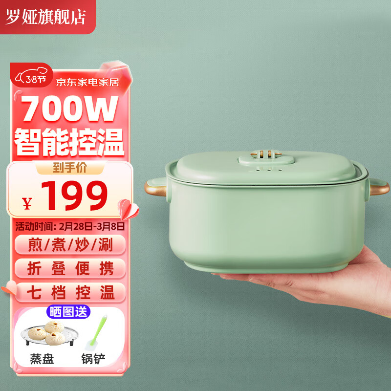 罗娅 便携式电煮锅折叠锅出差旅行锅分体式小电锅多功能锅迷你宿舍锅电热锅多用途锅小电火锅一人食 【智控版】北欧绿(晒图领礼蒸盘锅铲) 2L 满锅价格:229.00元!