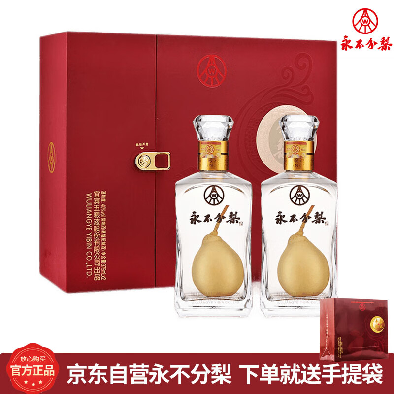 永不分梨白酒五粮液股份 礼盒装 40度 375ml*2瓶+礼袋 送礼特产收藏酒价格:349.00元!