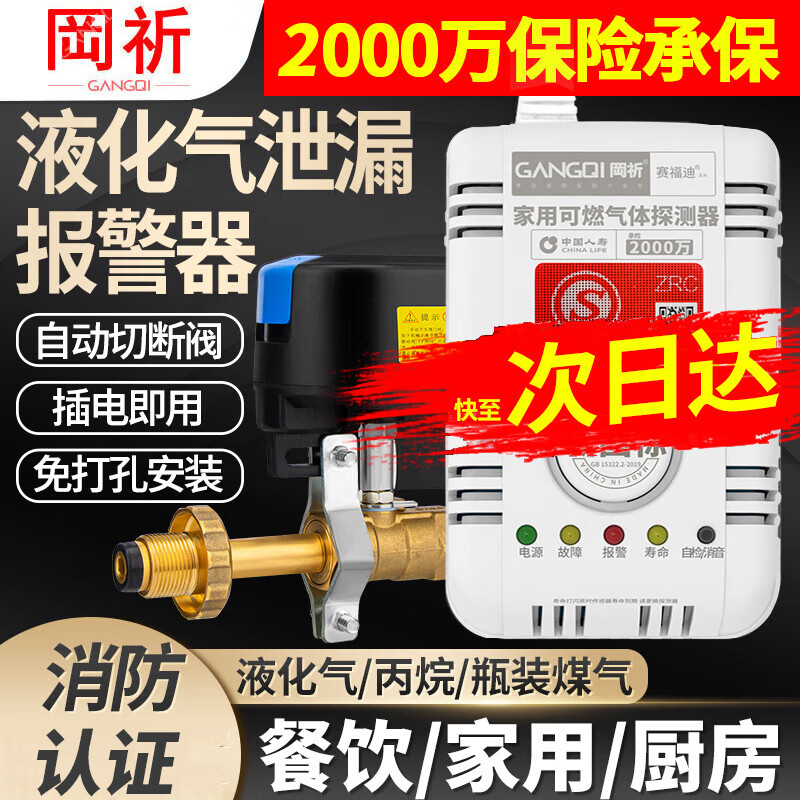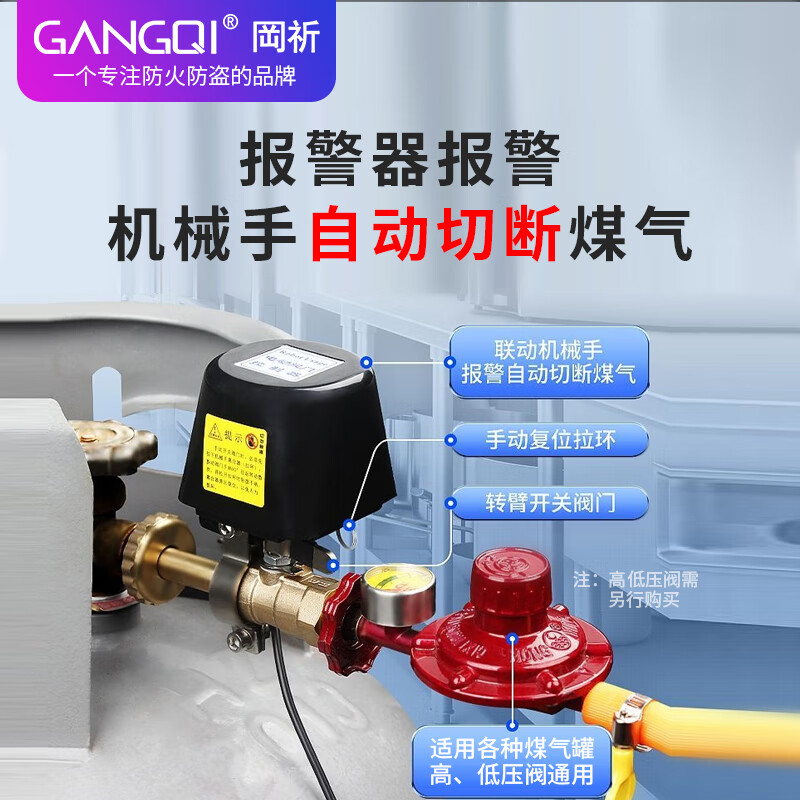 岡祈(Gangqi) 厨房煤气罐液化石油气燃气报警器自动切断阀钢瓶机械手智能家居家用商用煤气泄漏感应探测价格:189.00元!
