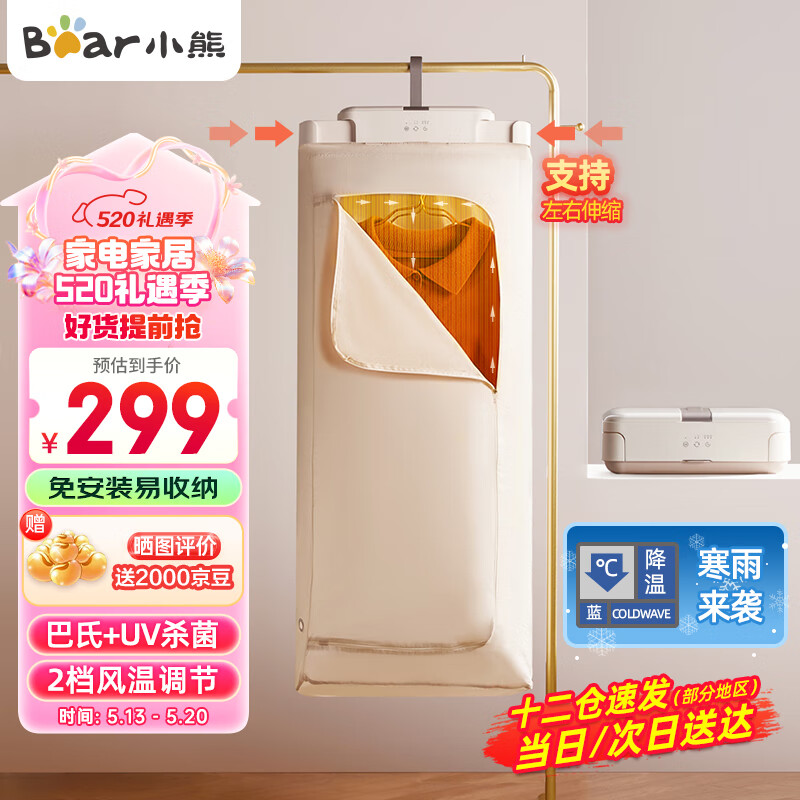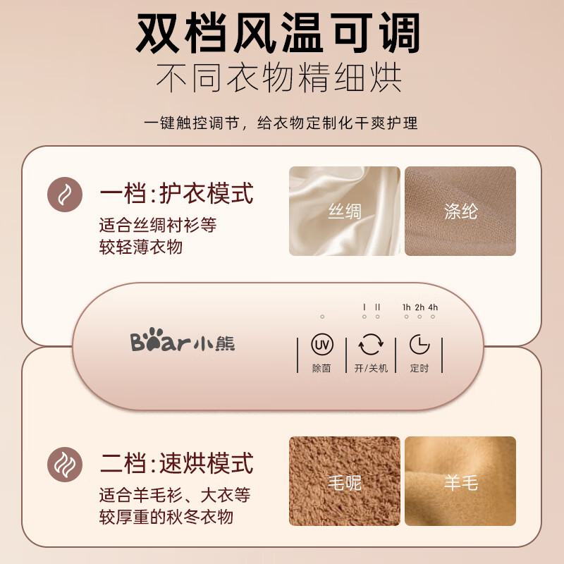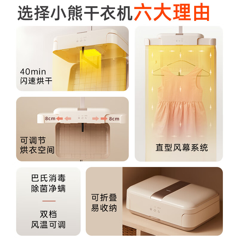 小熊烘干机家用干衣机干衣柜折叠烘干机便携巴氏杀菌智能定时恒温温控烘干机可调空间HGJ-T06K6价格:399.00元!