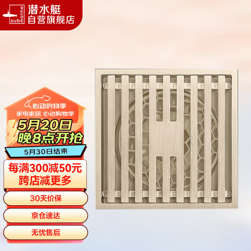 潜水艇(Submarine) LTK40-10黄铜镀镍大排量超薄地漏 奶油风移位淋浴四防地漏40管径价格:128.00元!