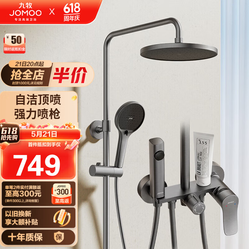 九牧(JOMOO)淋浴花洒套装枪灰自动除垢喷枪淋浴器36633-526/HBS-1价格:949.00元!