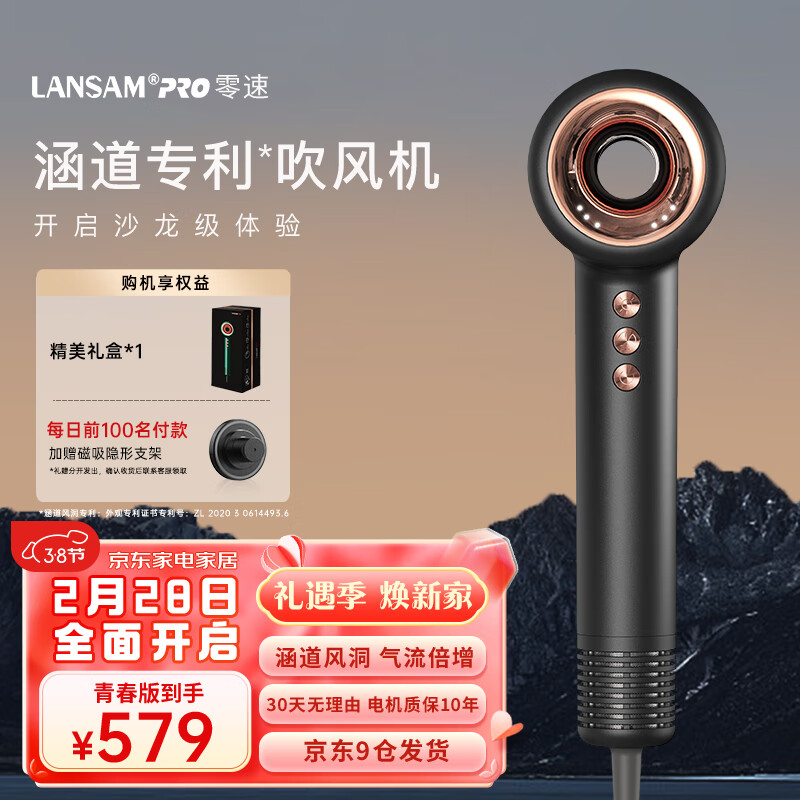 LANSAM零速吹风机家用风筒负离子护发高速大功率大风力速干不伤发理发店发廊用电吹风 青春版-迷雾灰价格:659.00元!
