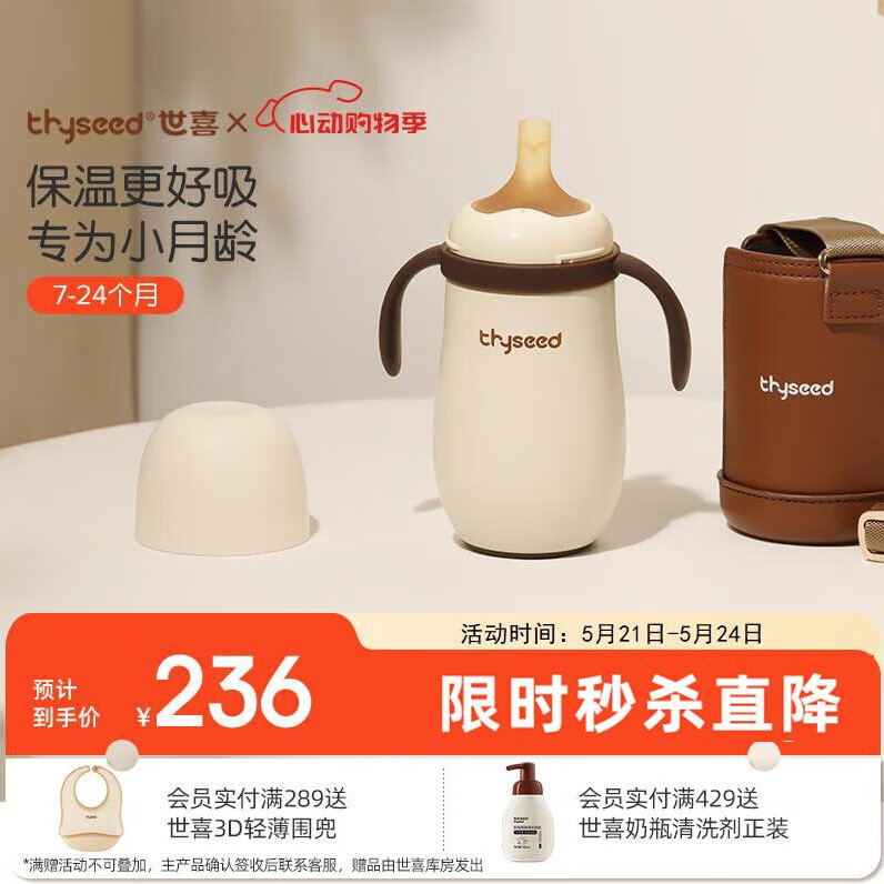 世喜婴儿保温杯小月龄奶瓶6个月以上宝宝316不锈钢食品吸管1-3岁水壶价格:236.00元!
