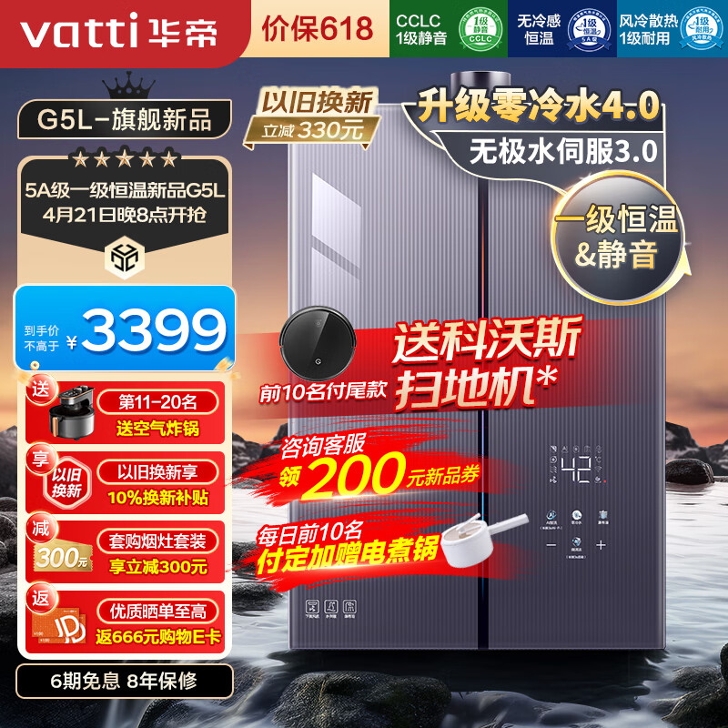 华帝(VATTI)16升燃气热水器天然气G5L 零冷水 5A级一级恒温一级静音双层密闭稳燃舱无极变频水伺服i12571B-16价格:3399.00元!