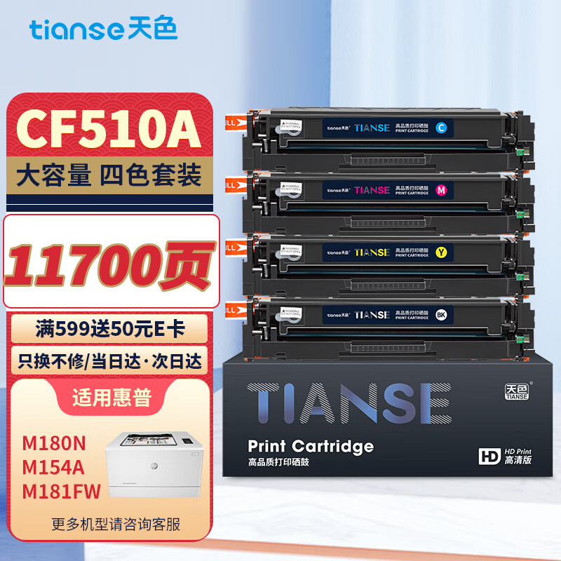 天色204a硒鼓适用惠普m180n硒鼓HP Color LaserJet Pro m154a m154nw m181fw打印机粉盒墨盒cf510a价格:299.00元!