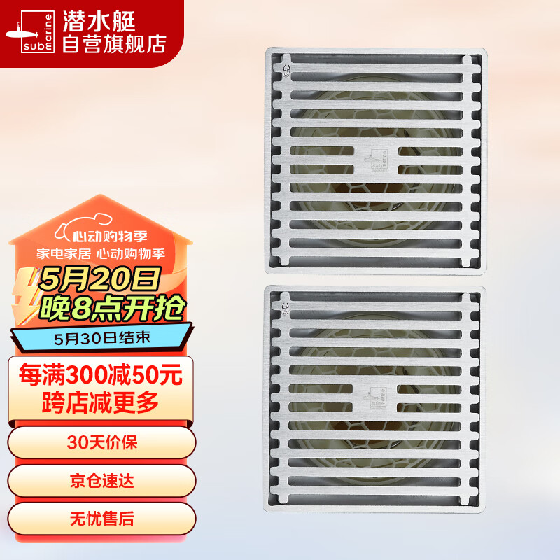 潜水艇(Submarine)不锈钢防臭地漏套装50管径大排量地漏套装两个装淋浴地漏超值套装价格:174.00元!