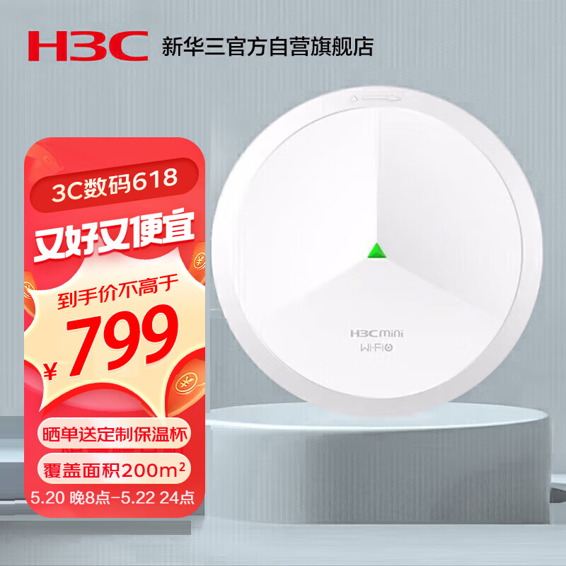 华三(H3C)WiFi6吸顶AP 3000M双频千兆 别墅酒店商用WiFi全覆盖 大功率 Mini AX61价格:828.00元!