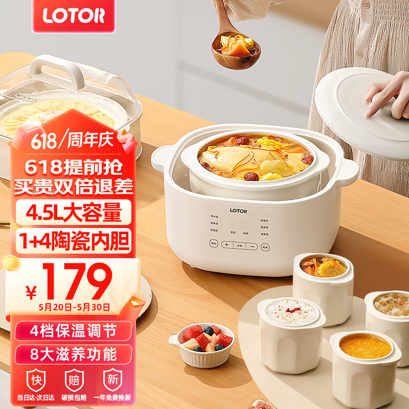 小浣熊电炖锅全自动炖汤锅煲汤煮粥神器隔水燕窝炖盅宝宝小炖锅1-2人陶瓷婴儿辅食锅熬粥专用锅 一锅五胆升级款 4.5L价格:309.00元!