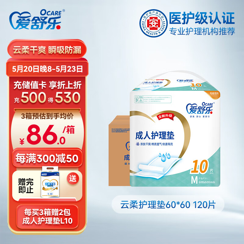 爱舒乐 成人护理垫M120片(尺寸:60cm*60cm) 老人隔尿垫 产妇产褥垫 尿垫价格:159.00元!