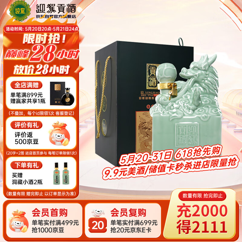 迎驾贡酒龙皇玉玺 浓香型白酒 52度 2.5L坛装(内含礼袋)价格:539.00元!
