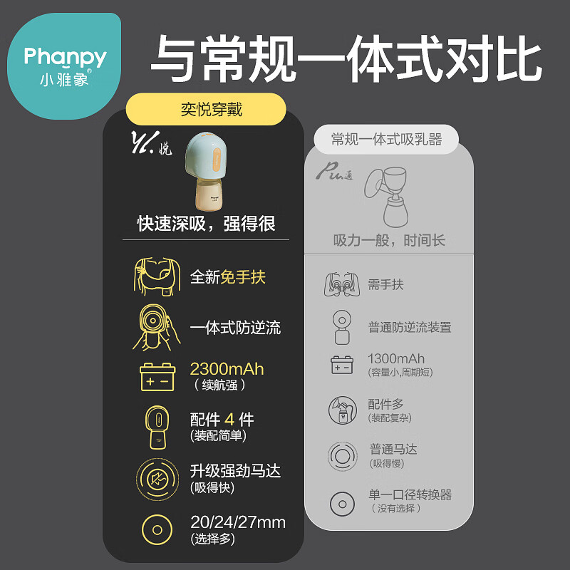 小雅象免手扶吸奶器电动穿戴式便携全自动无痛按摩集奶器挤奶器(奕悦)价格:250.00元!
