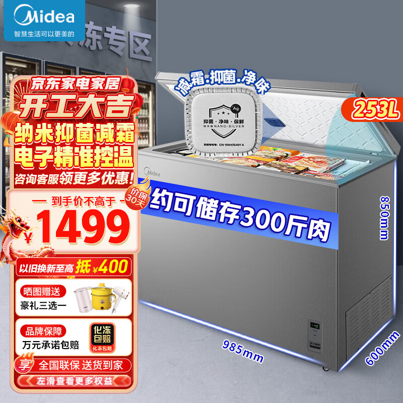 美的(Midea)253升卧式冰柜冷柜一级能效节能低霜内胆冷藏冷冻转换精准全域控温BD/BC-253KEM价格:1458.00元!