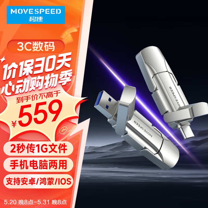 移速(MOVE SPEED)1TB USB3.2 Type-C 两用手机电脑u盘 固态U盘 两秒传一个G 稳定不掉速 支持苹果15系列 逸V系列价格:699.00元!