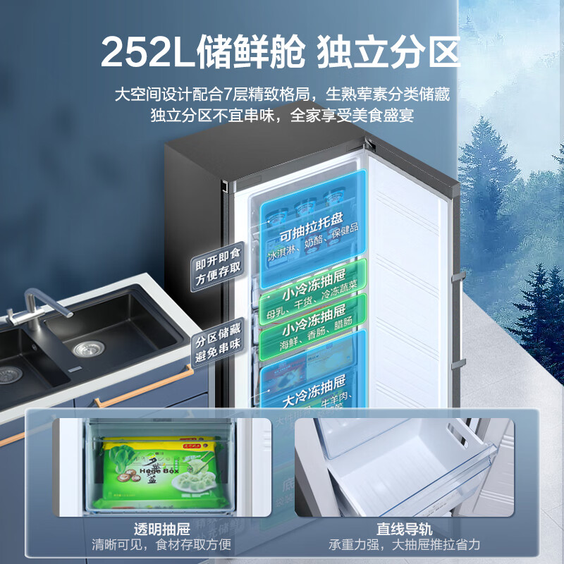 此款容声BD-252WRSY挺好的,收到货,静置2小时,通电!效果很满意,颜值抗打,空间足够,感觉放了很多东西,还没放‘1曼,放了一瓶水,很快冻住了!想下手的,可以考虑了!