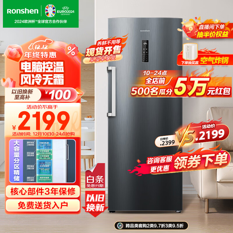 容声(Ronshen)252升风冷无霜家用立式冰柜 一级能效母乳冷冻柜抽屉式冷柜囤货家用小冰箱BD-252WRSY价格:2399.00元!