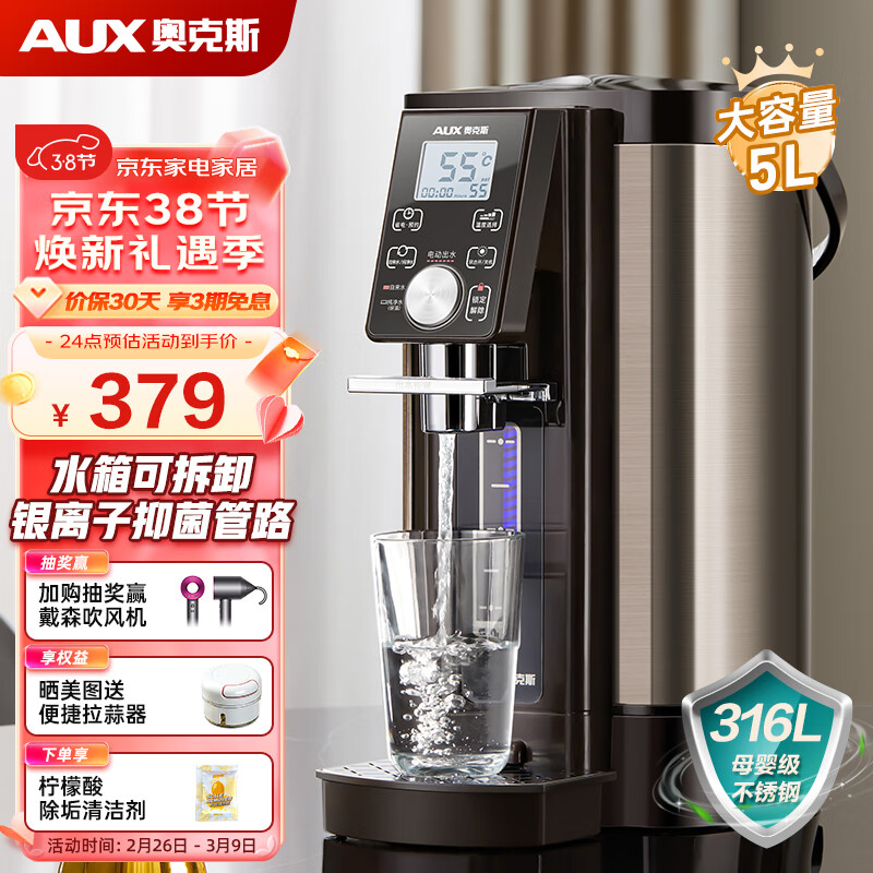 奥克斯(AUX)烧水壶 5升大容量电热水瓶 316L不锈钢分体式保温电热水壶多段恒温防烫 三模煮水 HX-8530FY 咖啡色价格:489.00元!