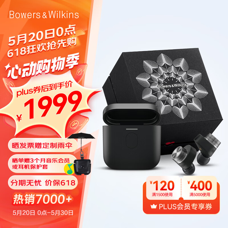宝华韦健(B&W) Pi7二代礼盒版 真无线主动降噪HIFI运动蓝牙耳机 Bowers&Wilkins音乐入耳式Pi7s2 苍墨黑价格:2099.00元!