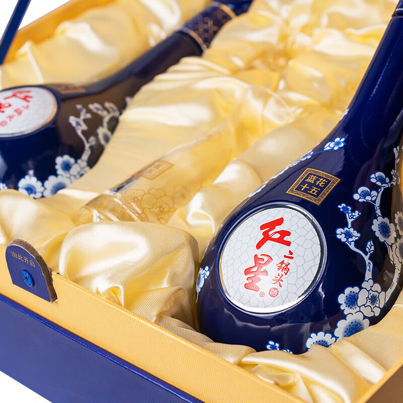 红星二锅头蓝花15 清香型白酒 52度 500ml*2瓶 礼盒装送礼父爱如山价格:459.00元!