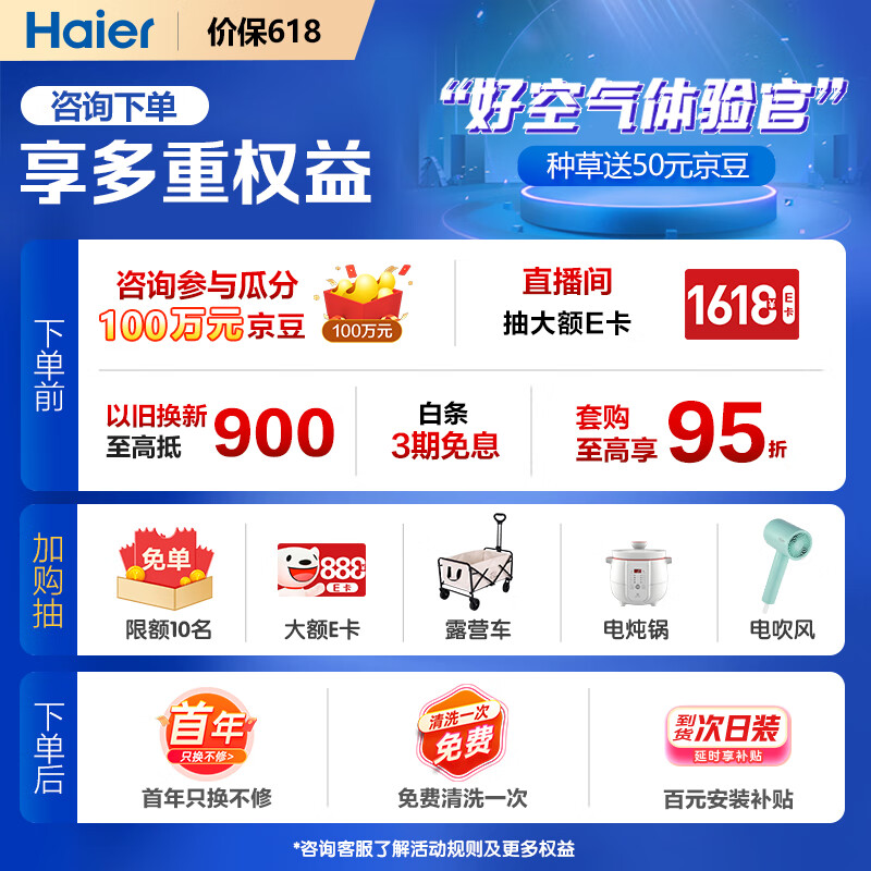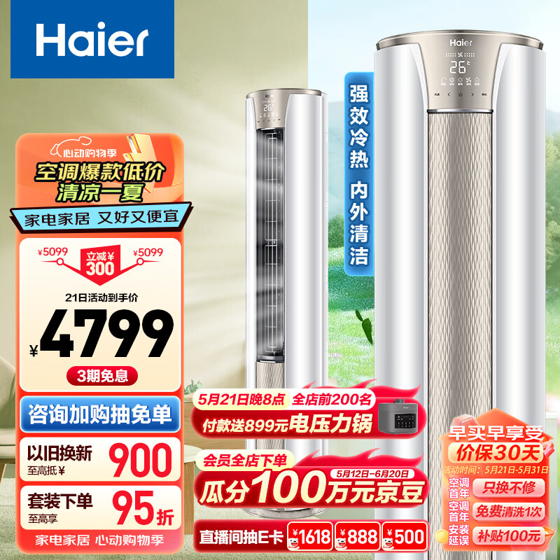 海尔(Haier)2匹 静悦 新一级变频冷暖 客厅圆柱空调立式柜机 京东小家智能 KFR-50LW/03KCA81U1 以旧换新价格:4799.00元!