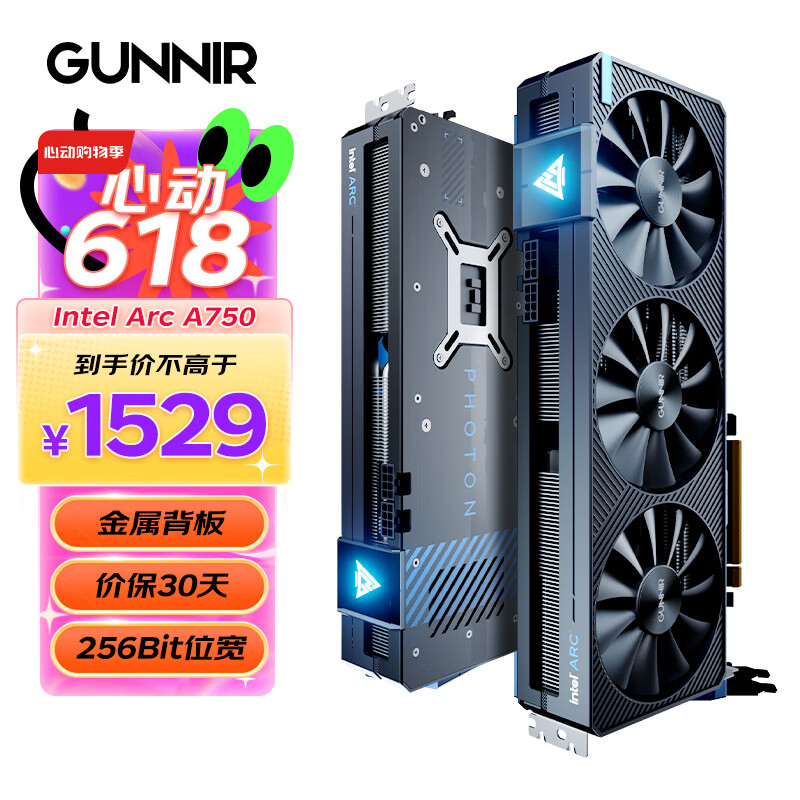蓝戟(GUNNIR)Intel Arc A750 Photon 8G OC 2400MHz GDDR6超频版 游戏显卡设计视频剪辑台式电脑显卡价格:1609.00元!