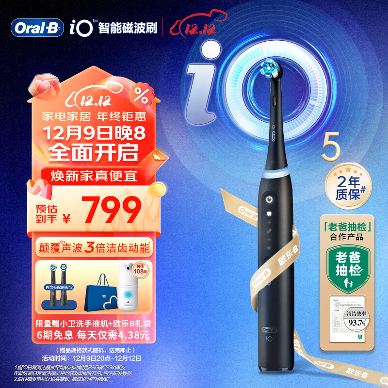 欧乐B成人电动牙刷成人 iO5智能磁波刷 iO系列圆头微震科技 深度清洁情侣送礼生日礼物圣诞礼物新年礼物价格:919.00元!
